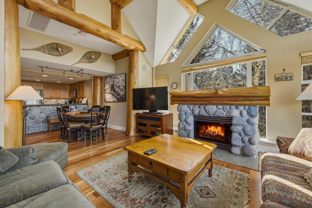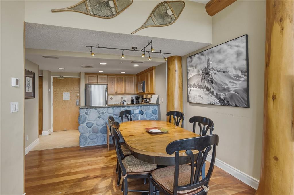 This 2-bedroom, 2-bathroom, top-floor, end unit at the Woodrun Lodge Whistler offers true ski-in/ski-out to the base of Blackcomb Mountain and the Wizard Chairlift in the Upper Village. The property’s prime location, vaulted ceiling, full kitchen, gas fireplace, radiant heat on all hard surfaces, extra storage (bonus 5 storage lockers!), covered parking, breathtaking views, and peeled logs give it a unique feel. The Woodrun Lodge features a pool, hot tub and fitness facility surrounded by pine trees and the peacefulness of the mountains. It is also conveniently located just a short 10-minute walk or a 5-minute free shuttle ride to Whistler Village, which offers a fine selection of dining, shopping and nightly entertainment.