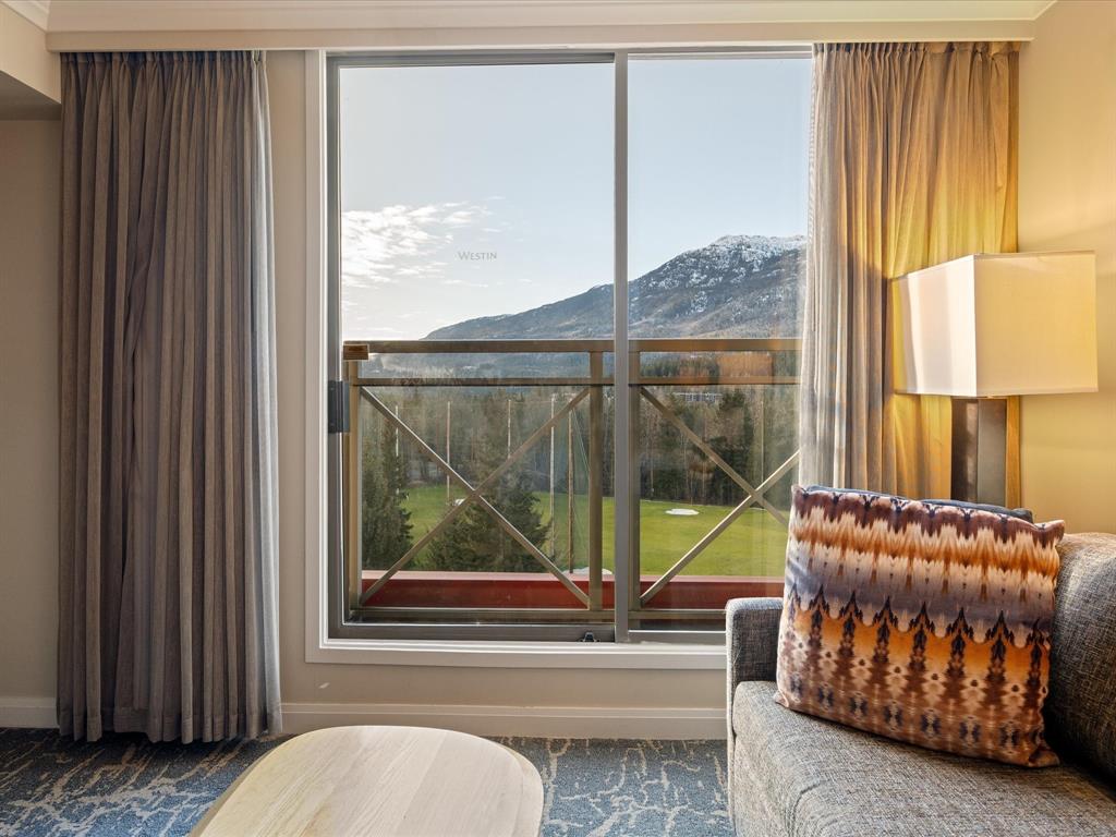 Step into the kind of Whistler escape that feels instantly restorative. Suite 855 at The Westin Resort & Spa Whistler is a bright 351 sq. ft. studio with a king size heavenly bed and queen size sofa bed that delivers something truly rare: wide-open views over the Whistler Golf Course driving range, framed by afternoon sun and soft alpine light. It’s the perfect backdrop for slow mornings, relaxed après, and golden-hour sunsets that make every stay feel special.